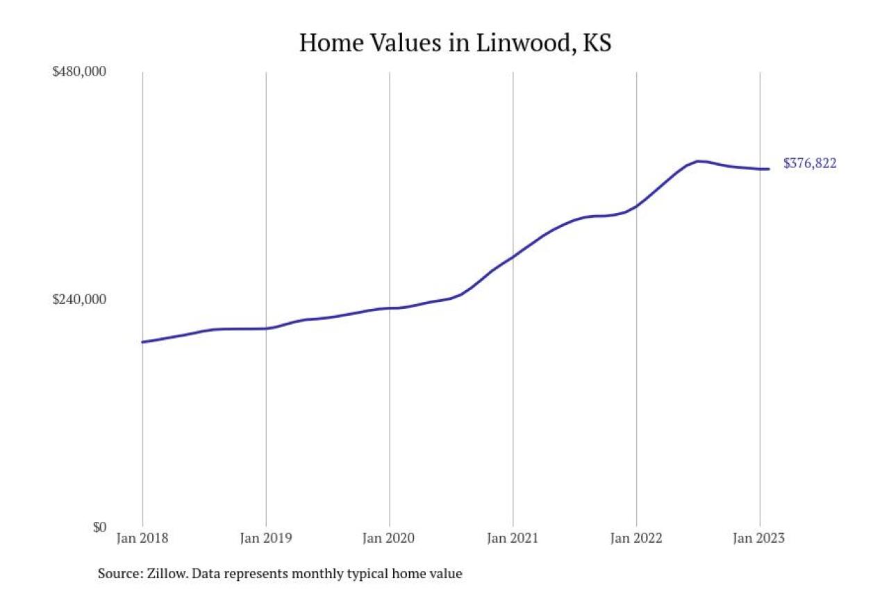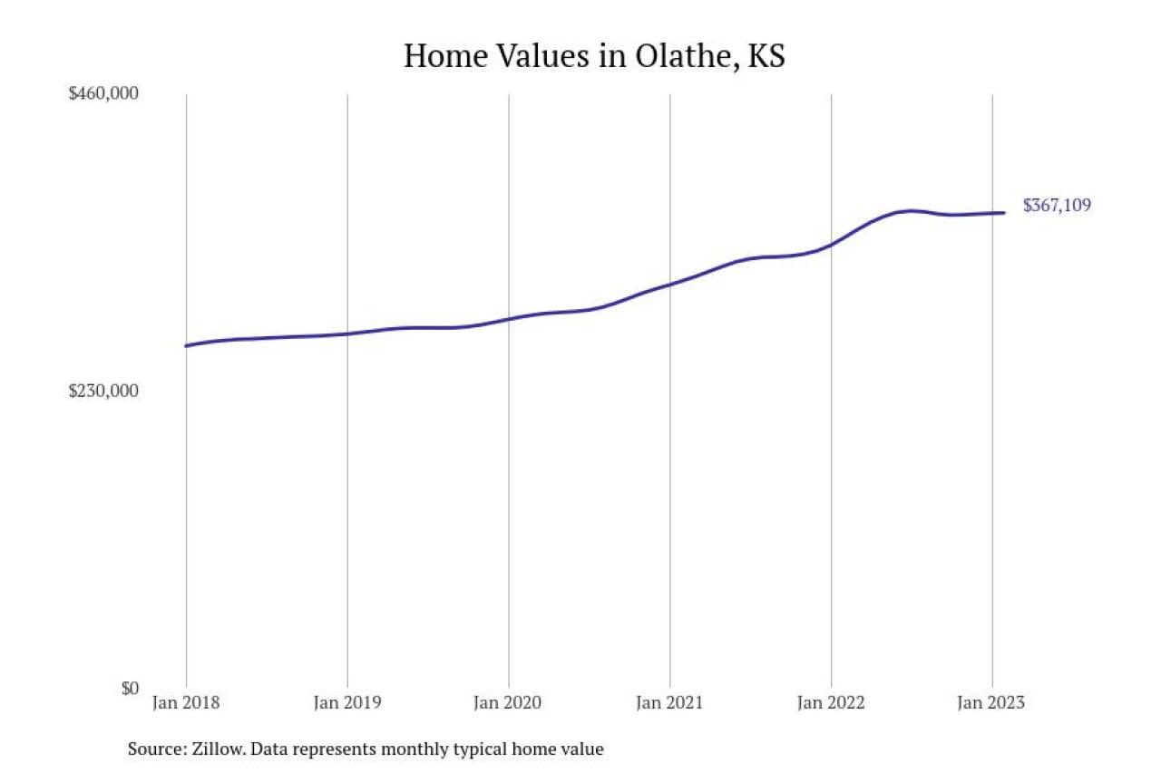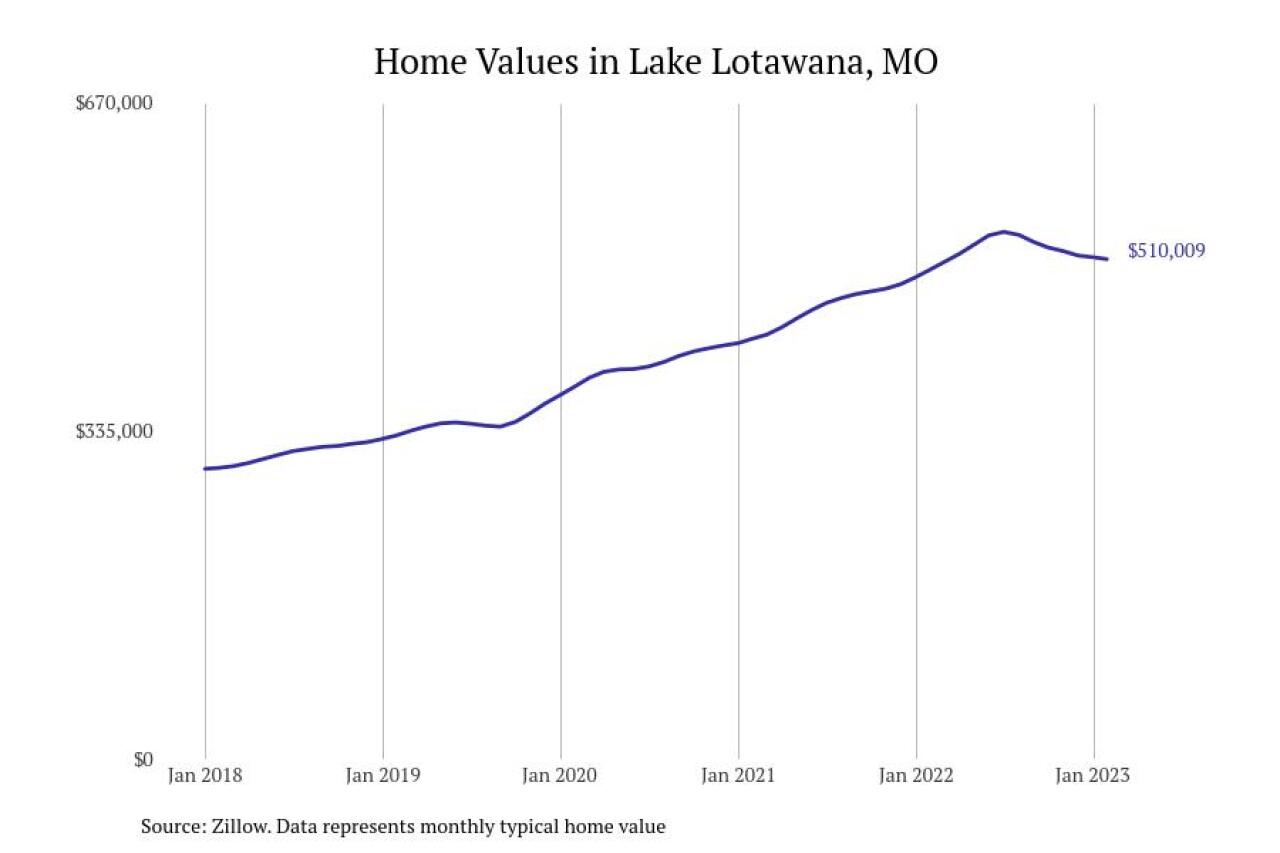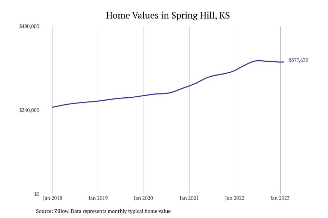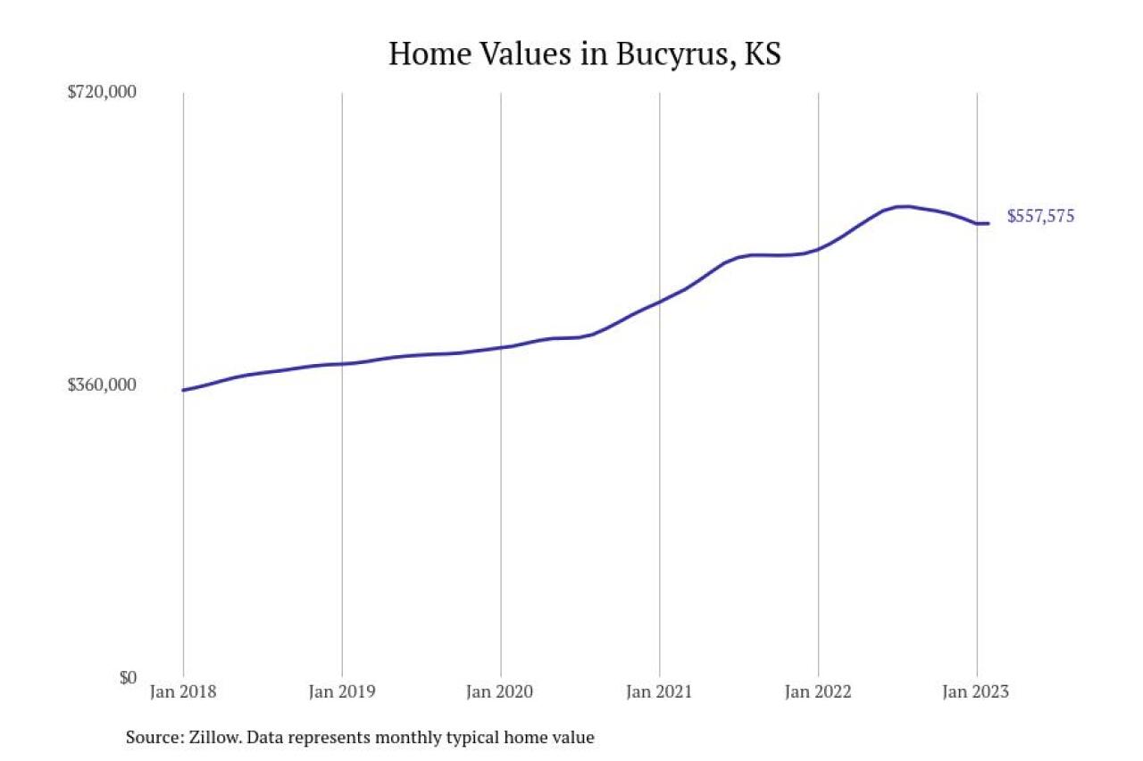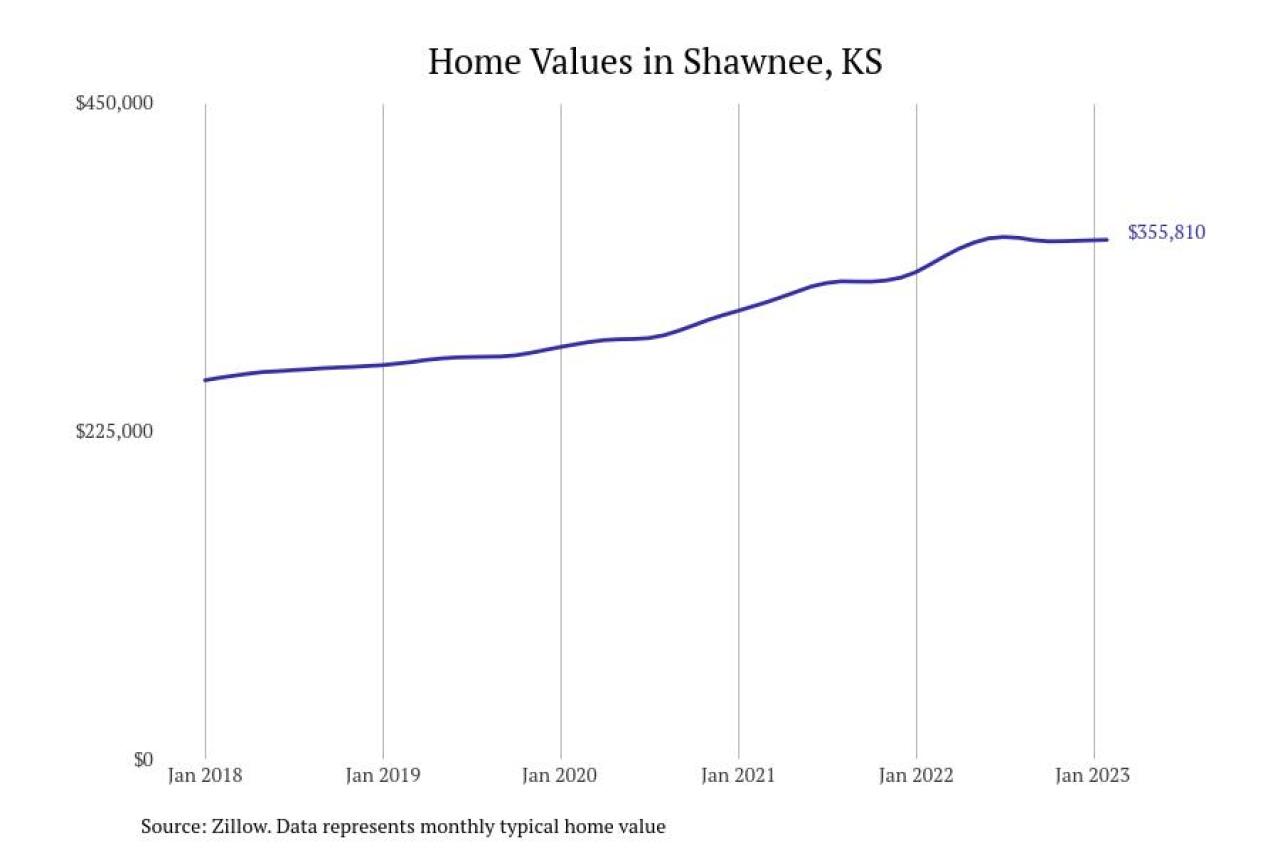 Stacker compiled a list of cities with the most expensive homes in Kansas City using data from Zillow. Cities are ranked by the Zillow Home Values Index for all homes as of February 2023. The ZVHI represents a seasonally adjusted price for the middle market for all homes. Data was available for 133 cities and towns in Kansas City. Charts for each city show the monthly typical home value since January 2018.