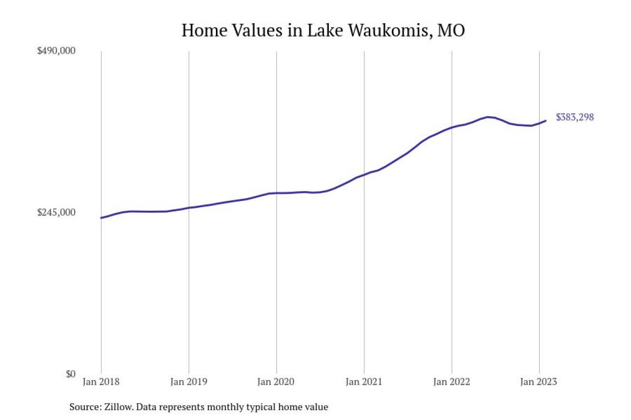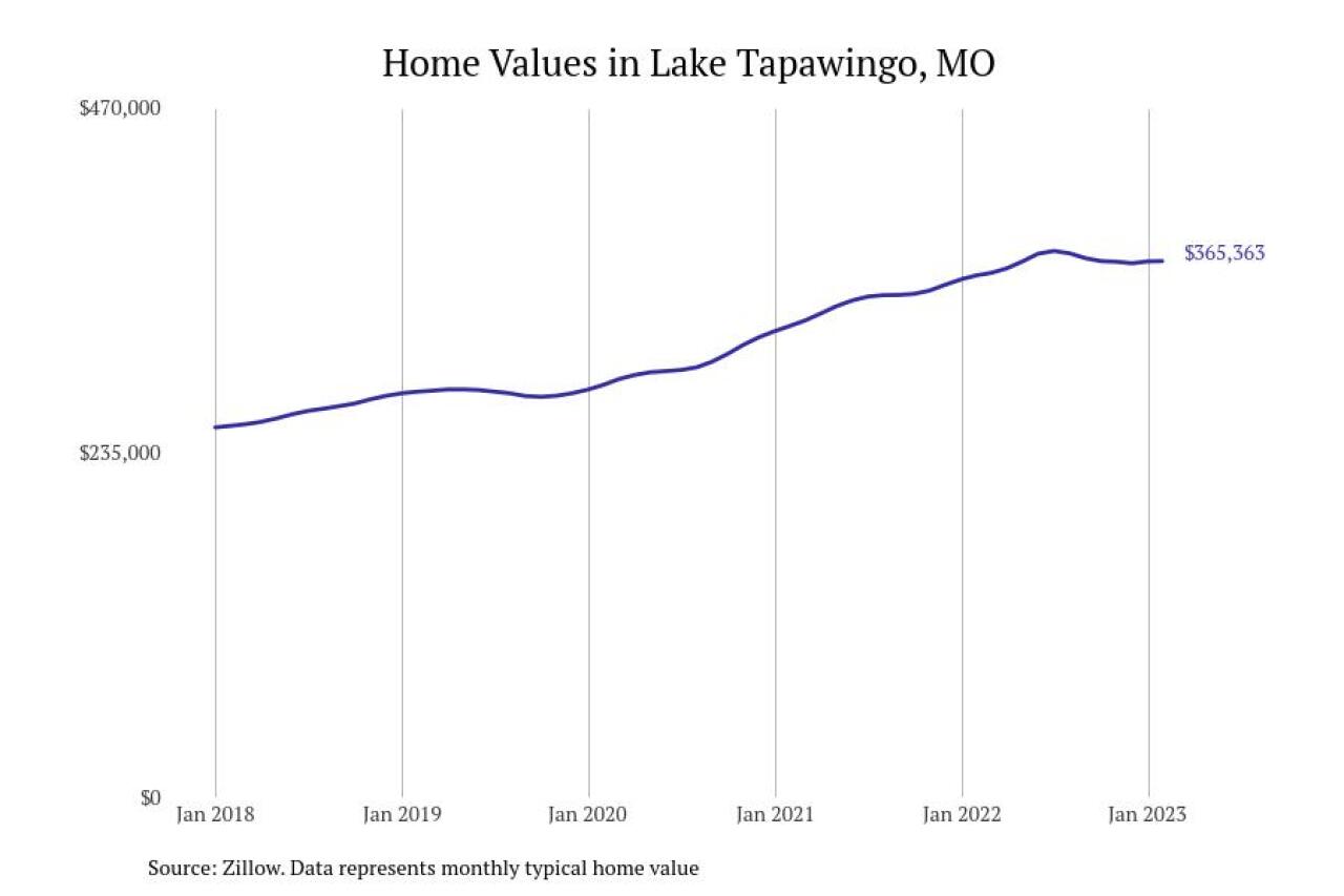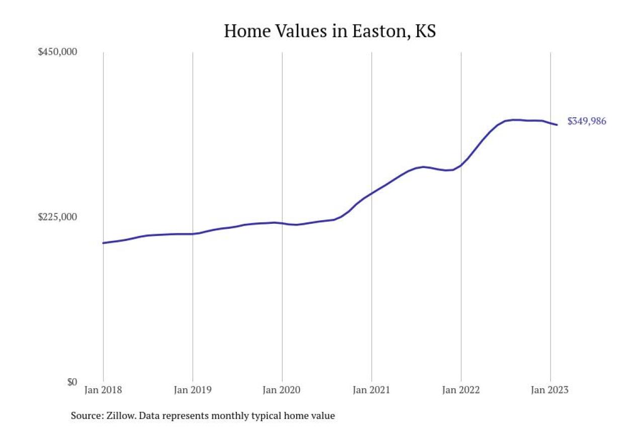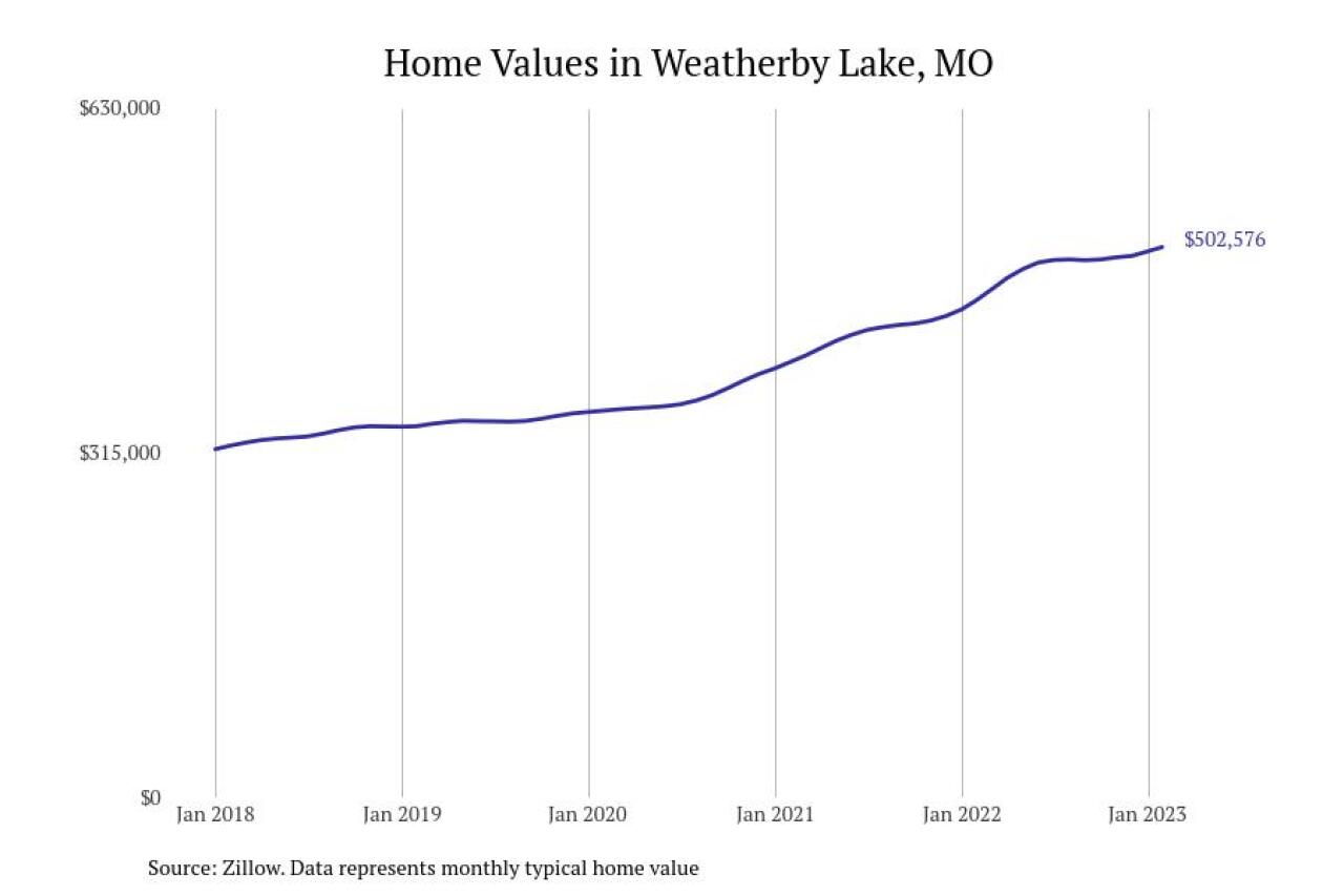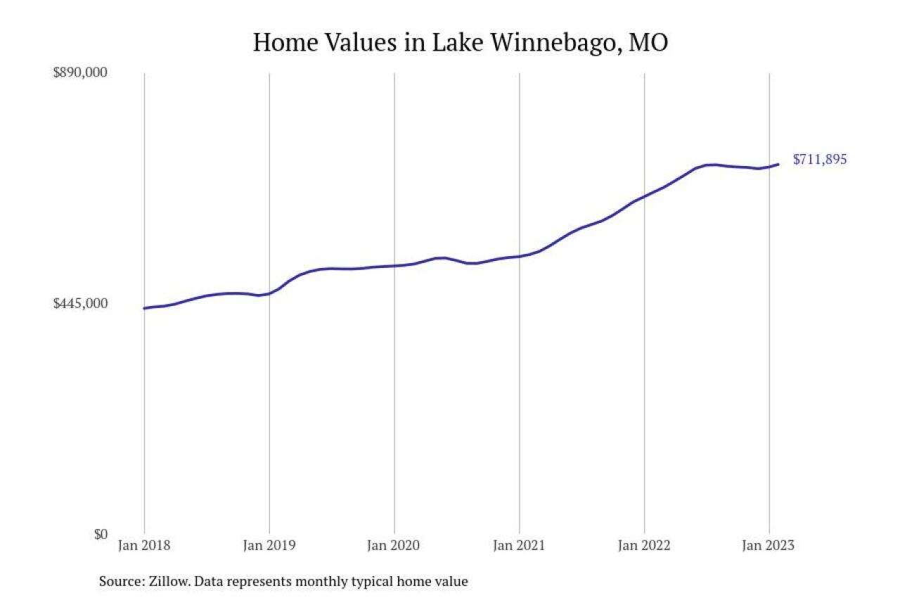 Stacker compiled a list of cities with the most expensive homes in Kansas City using data from Zillow. Cities are ranked by the Zillow Home Values Index for all homes as of February 2023. The ZVHI represents a seasonally adjusted price for the middle market for all homes. Data was available for 133 cities and towns in Kansas City. Charts for each city show the monthly typical home value since January 2018.
