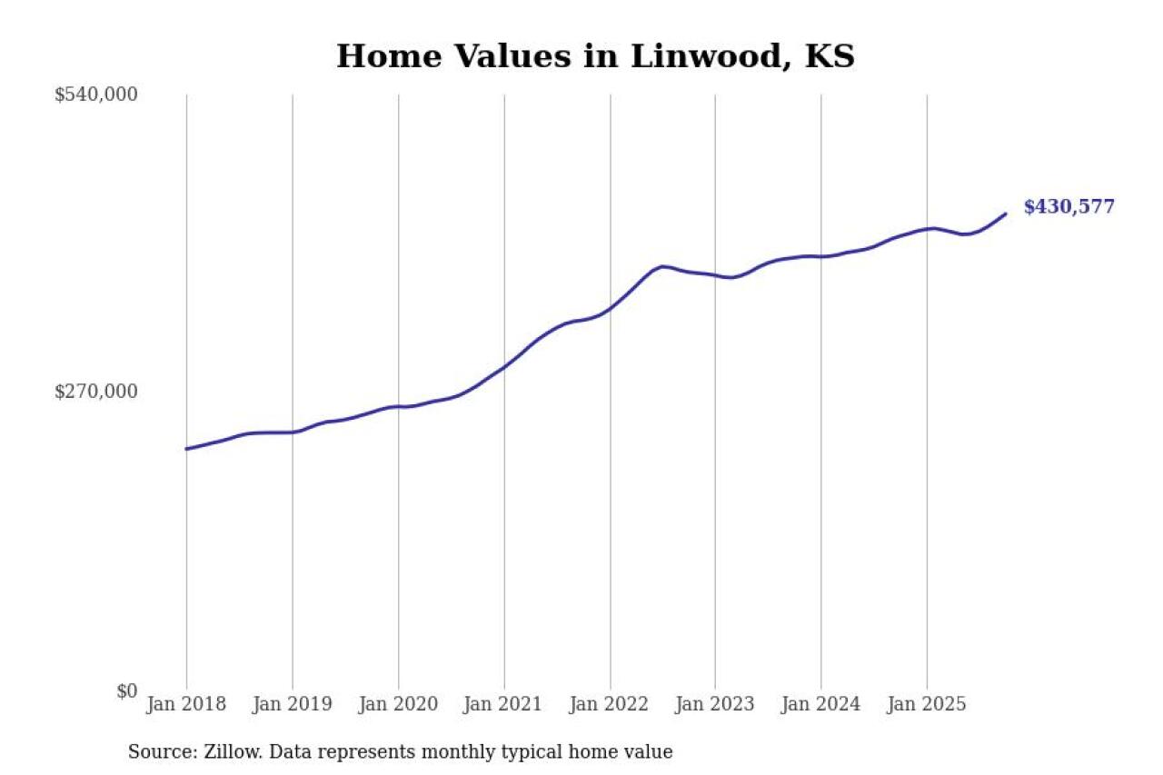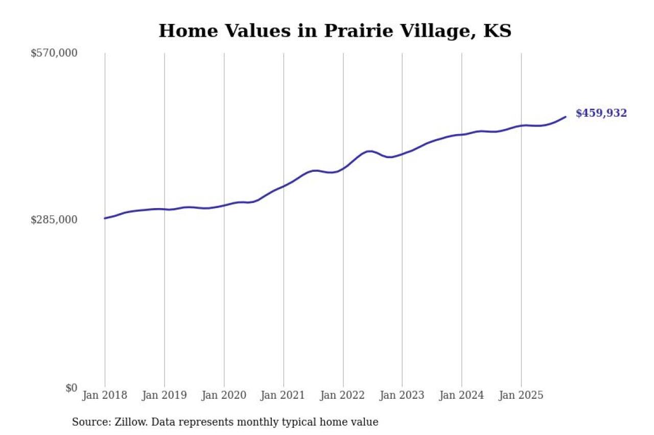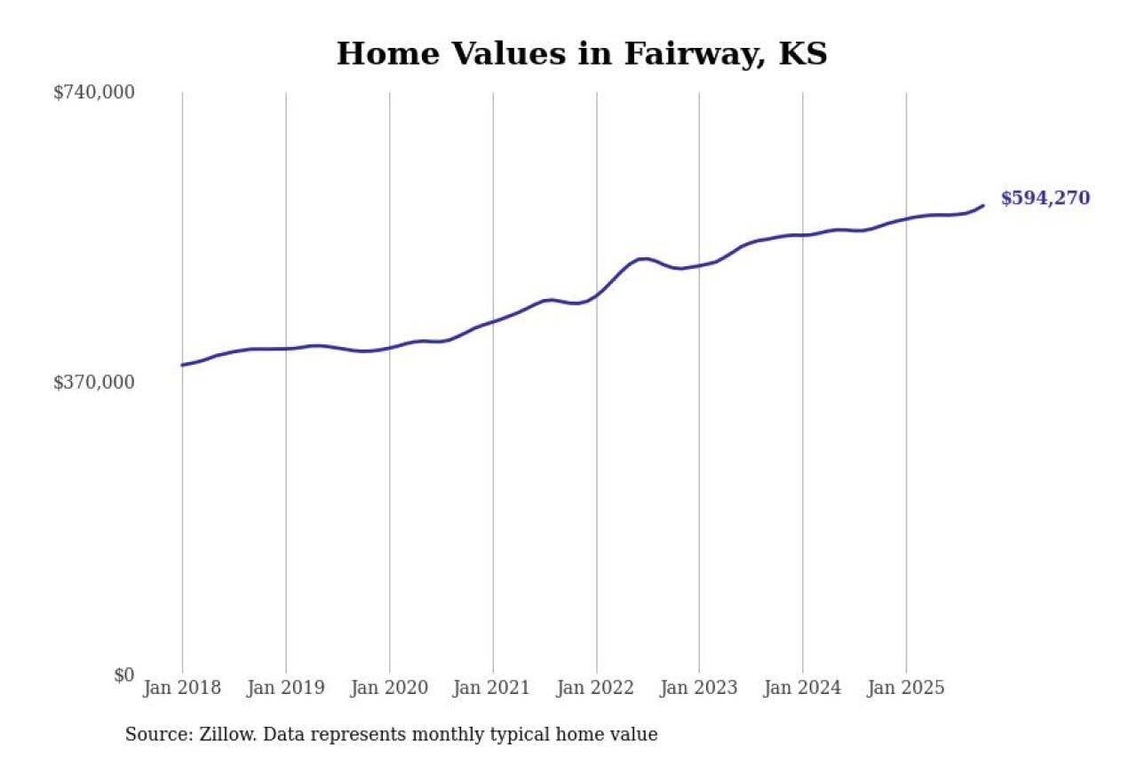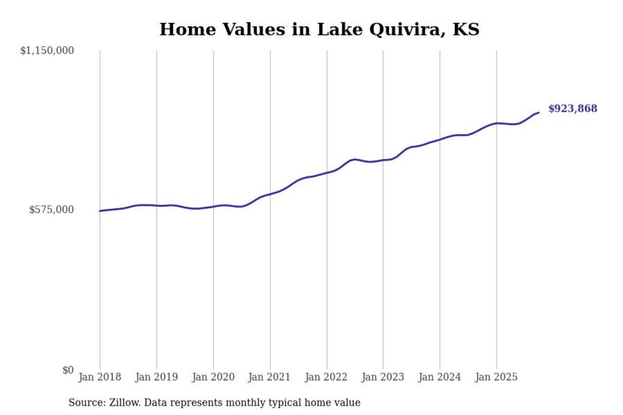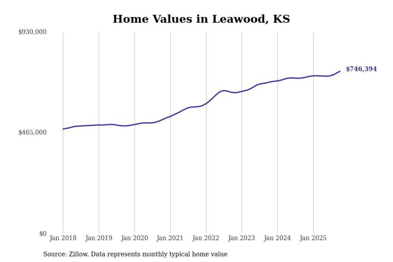 Stacker compiled a list of cities with the most expensive homes in the Kansas City metro area using data from Zillow. Charts show the monthly typical home value since January 2018. Data was available for 134 cities and towns.