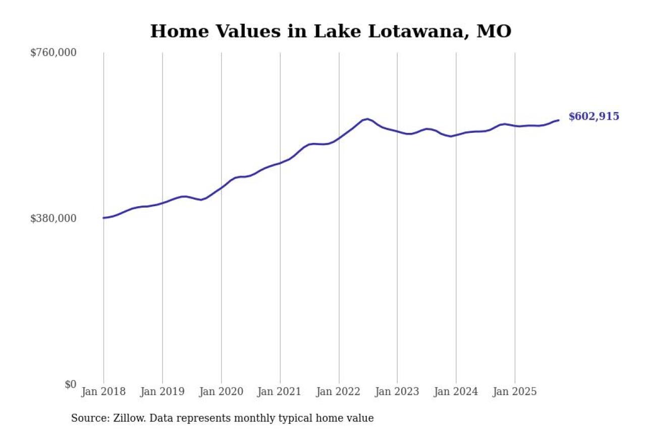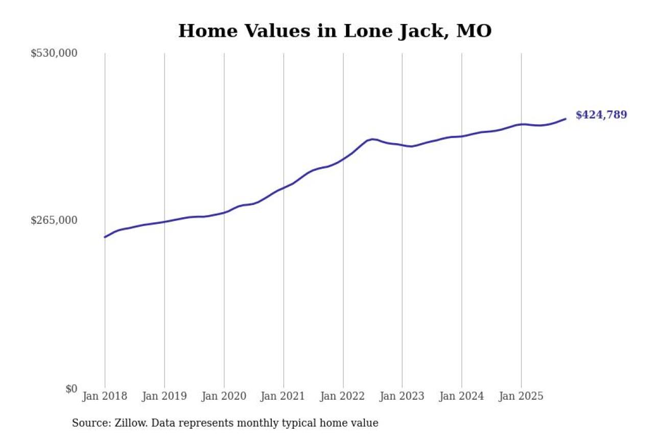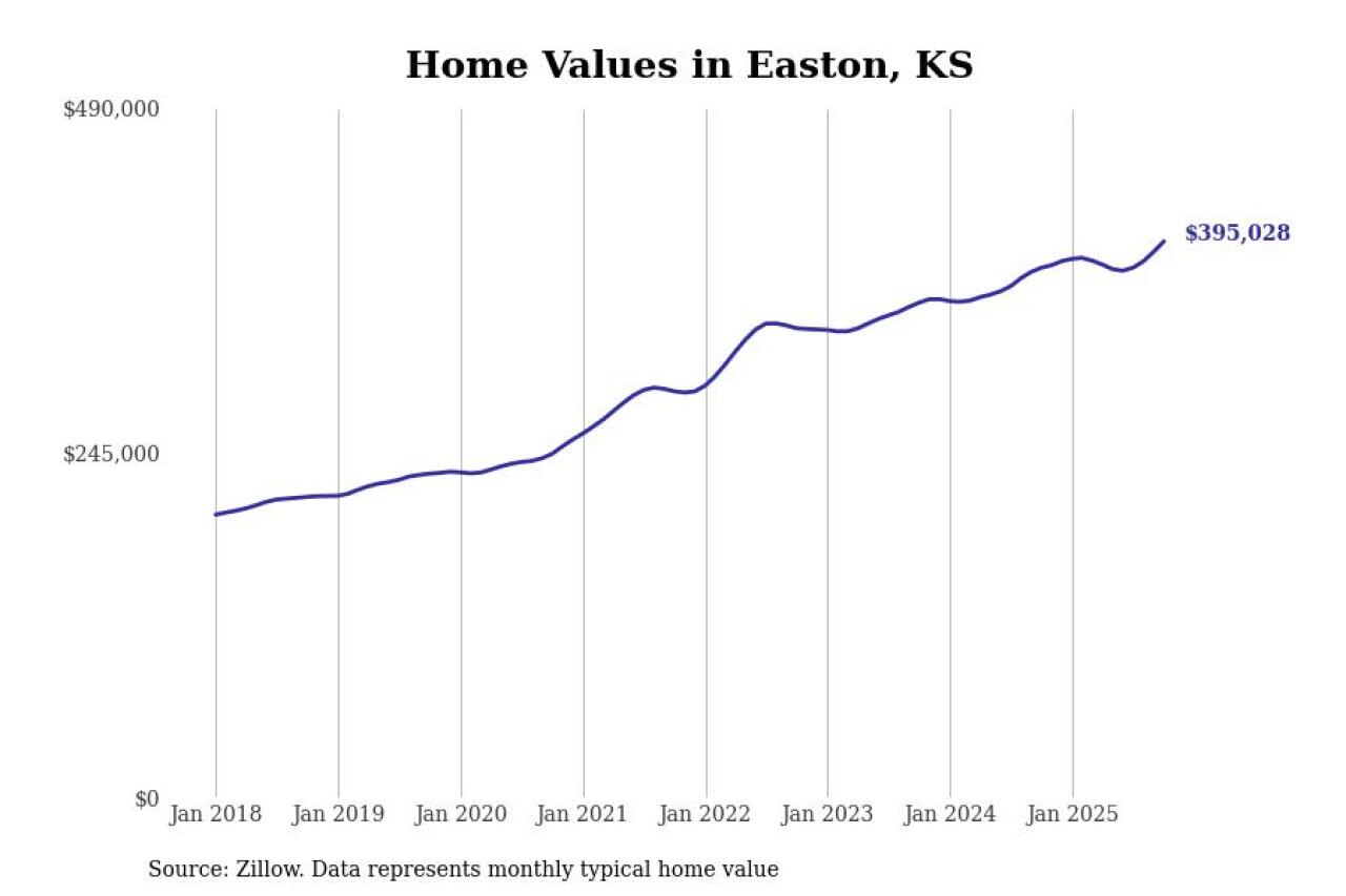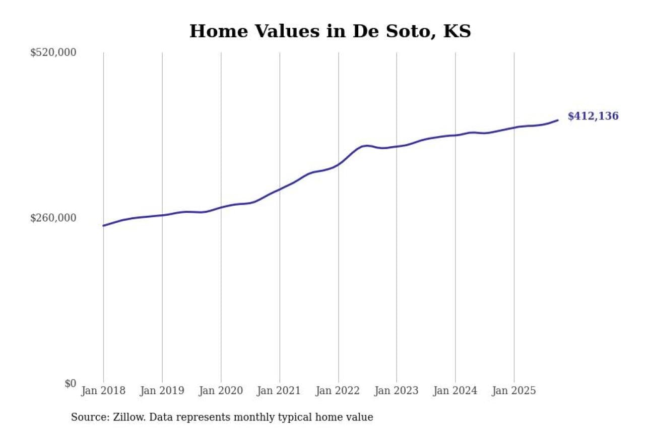 Stacker compiled a list of cities with the most expensive homes in the Kansas City metro area using data from Zillow. Charts show the monthly typical home value since January 2018. Data was available for 134 cities and towns.