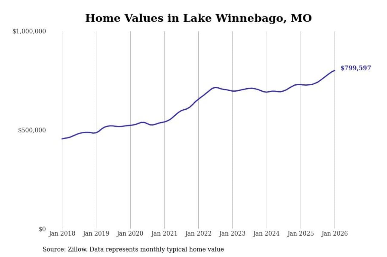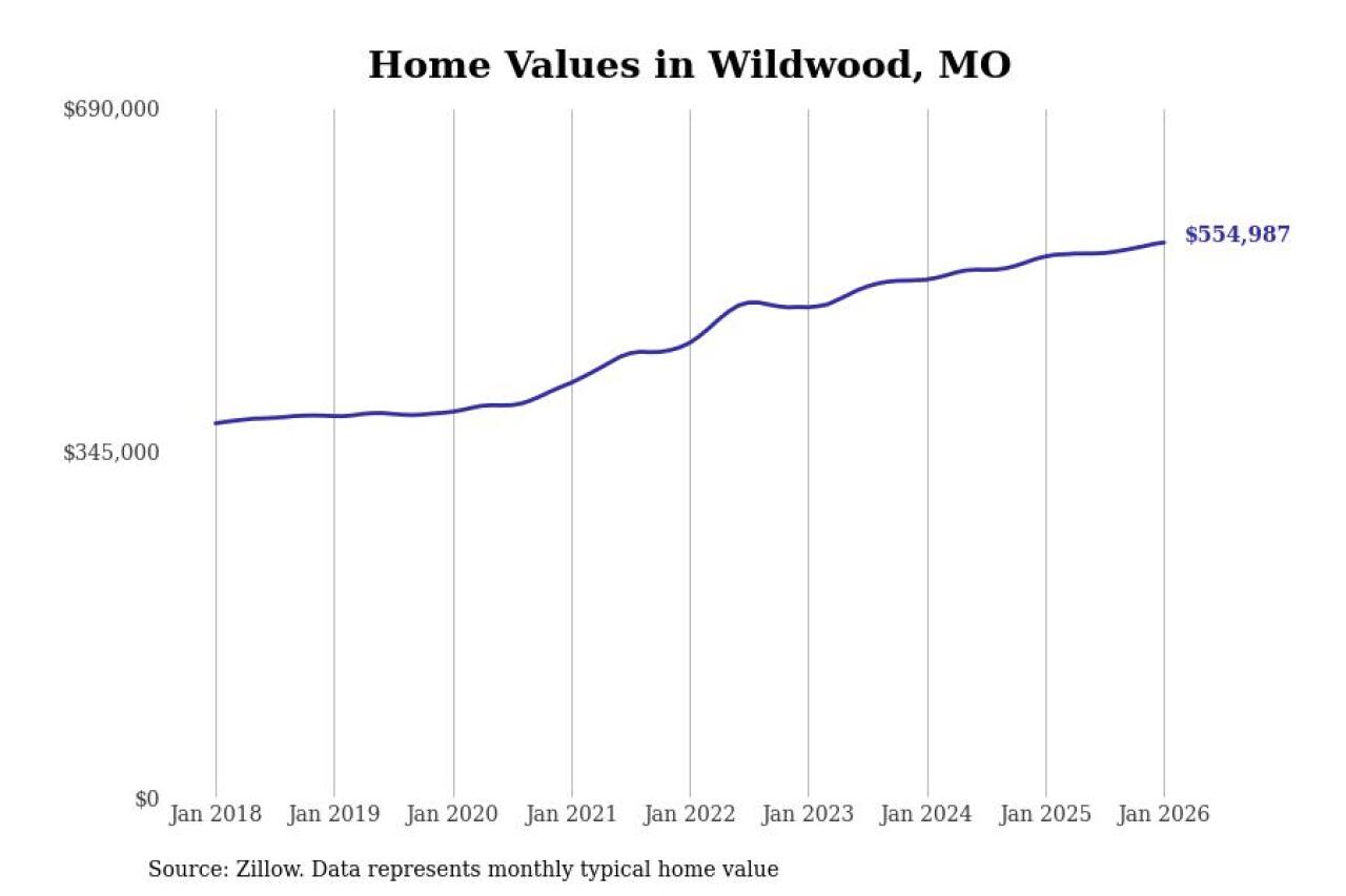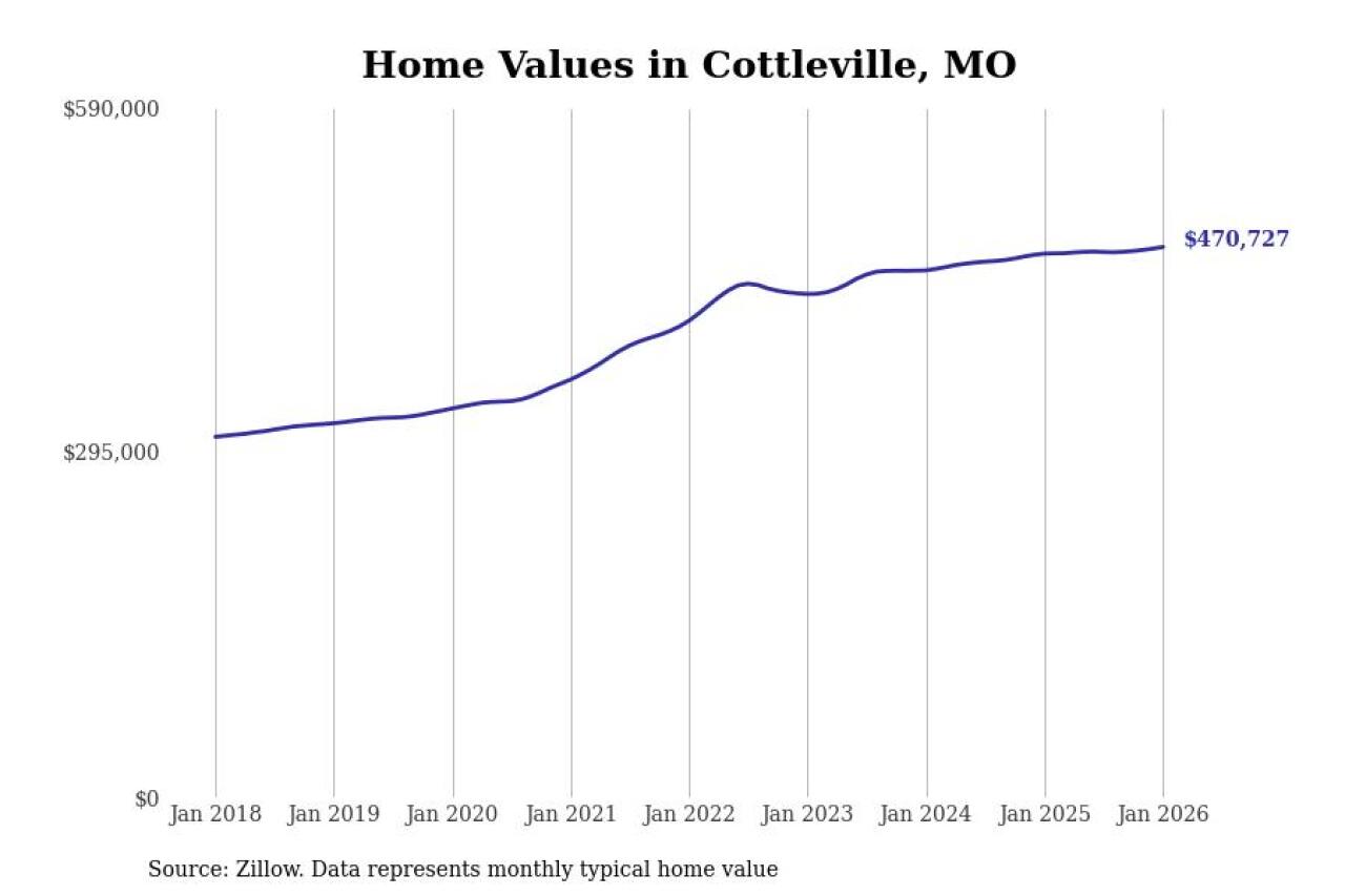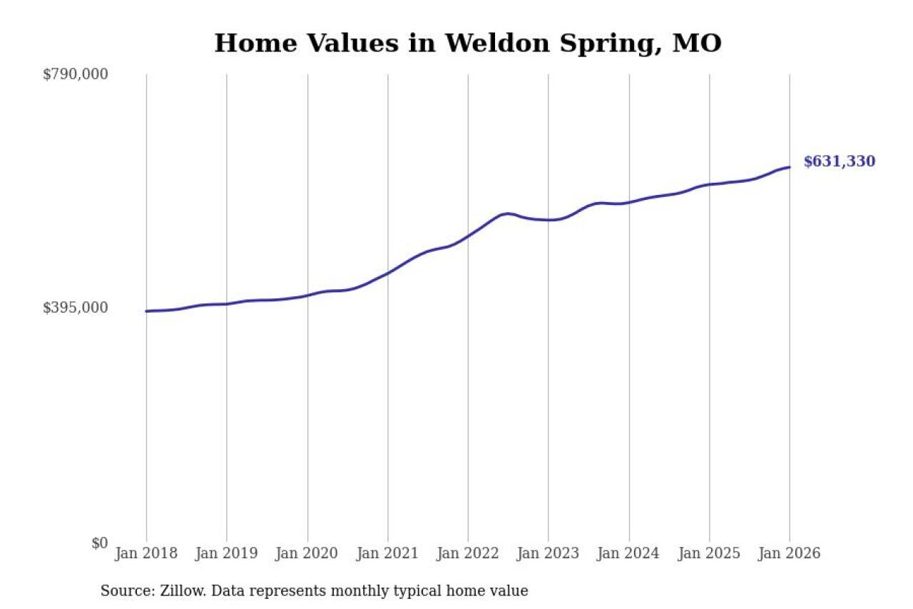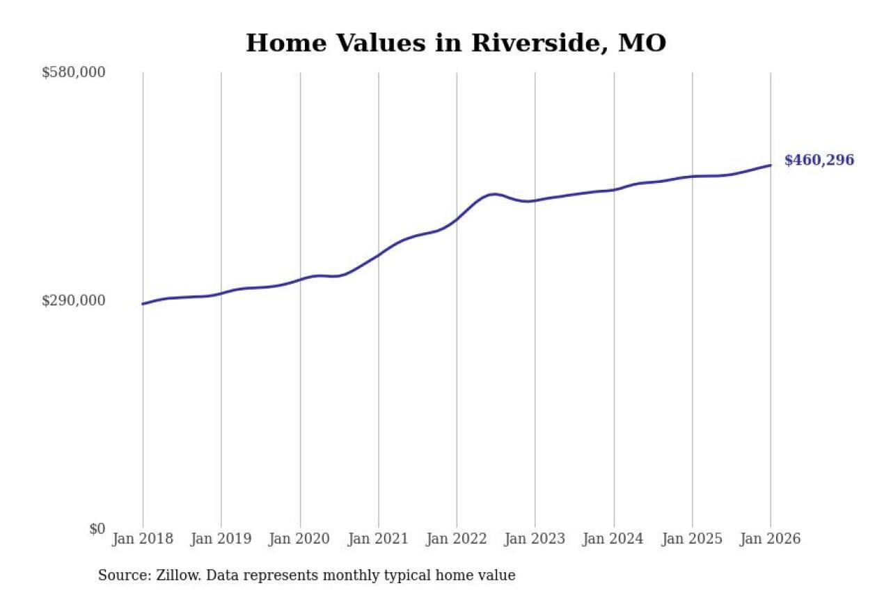 Stacker compiled a list of cities with the most expensive homes in Missouri using data from Zillow. Cities are ranked by the Zillow Home Values Index for all homes as of January 2026. The charts in this story were created automatically using Matplotlib.
