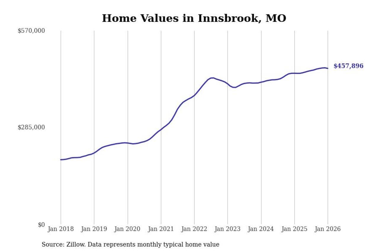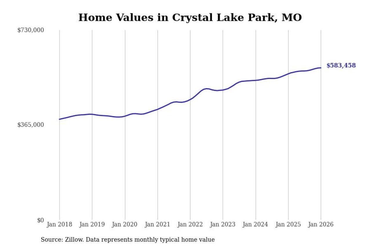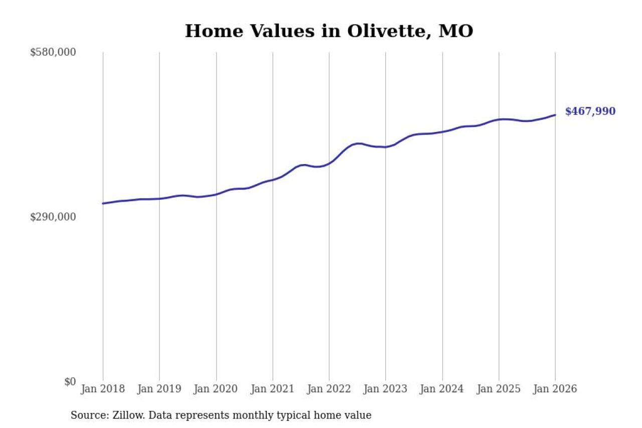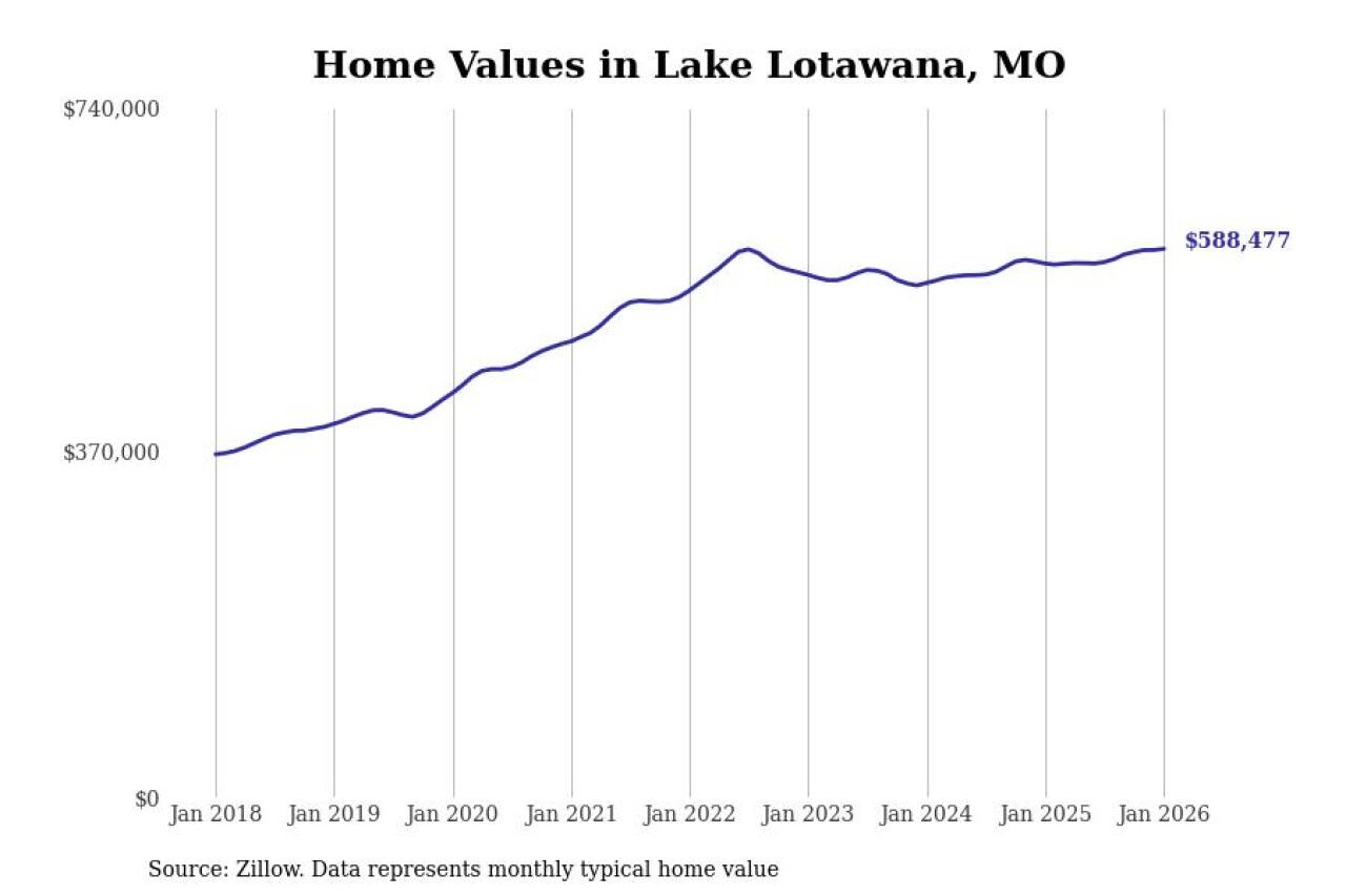 Stacker compiled a list of cities with the most expensive homes in Missouri using data from Zillow. Cities are ranked by the Zillow Home Values Index for all homes as of January 2026. The charts in this story were created automatically using Matplotlib.